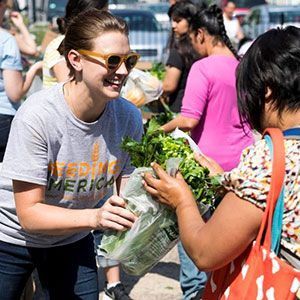 On a humid Friday morning, as the city of Chicago starts to bustle with summer activity, the Feeding America national office is unusually quiet. Empty meeting rooms and quiet hallways are actually the byproduct of some office-wide hooky, but the plotting of Ferris Bueller (or like-minded employees) can’t be blamed. Instead, it’s the annual Day of Impact, when office staff take the opportunity to volunteer in the community and interact with the people we serve. To reconnect with the face of hunger. So we venture out to food pantries and mobile sites across the city, don gloves, bag produce, carry grocery bags and break down pallets.