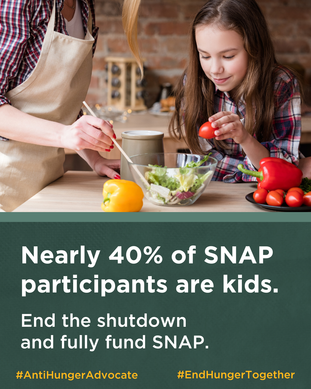 [TAG YOUR LAWMAKERS], reopen the government and fully fund SNAP! #EndHungerTogether